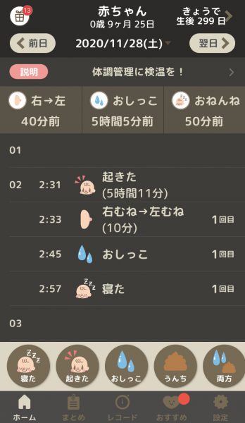 赤ちゃんの「おしっこ」「うんこ」「離乳食」「睡眠」の記録が、夫婦で共有できるアプリです。