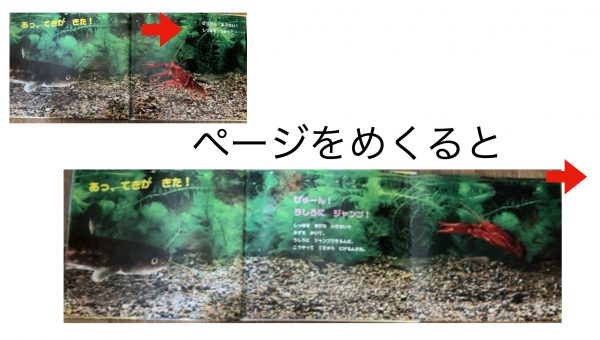 下記の写真のようなしかけも数ページあり、子どもが楽しめる工夫がされています。