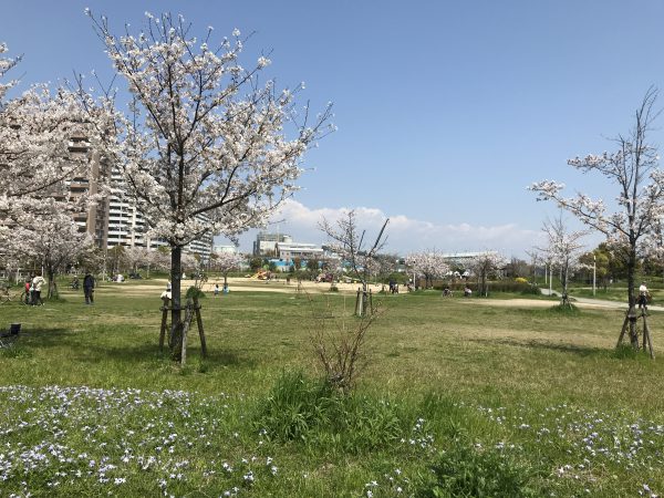 大阪市の此花区高見地区にある新家公園は、春は桜やクローバー、夏は淀川の花火など公園で地域の方から愛される都市公園です。