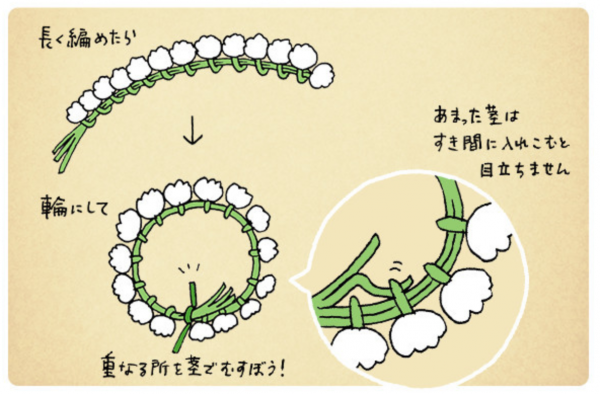 花かんむりの作り方はこちらで紹介されていました。