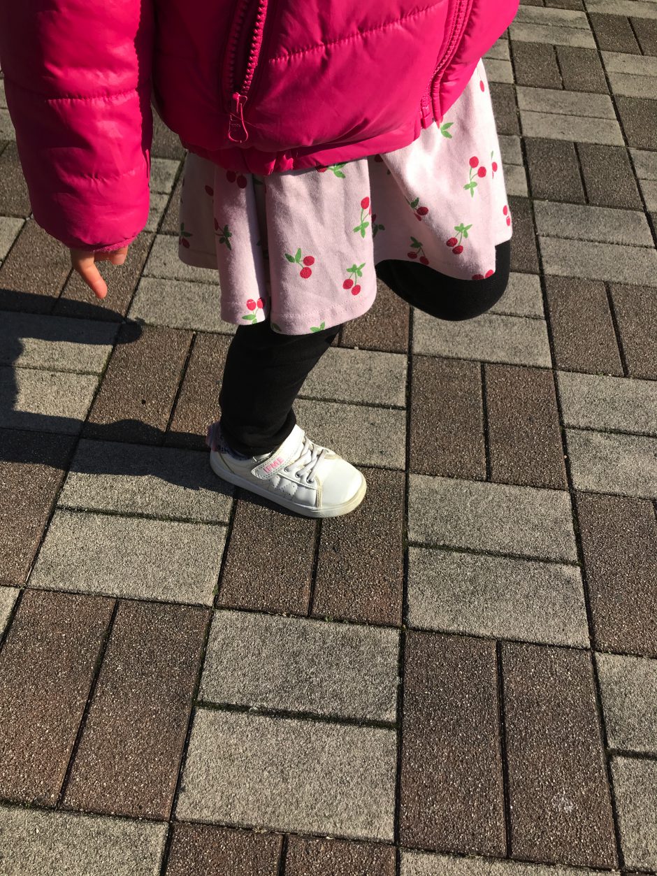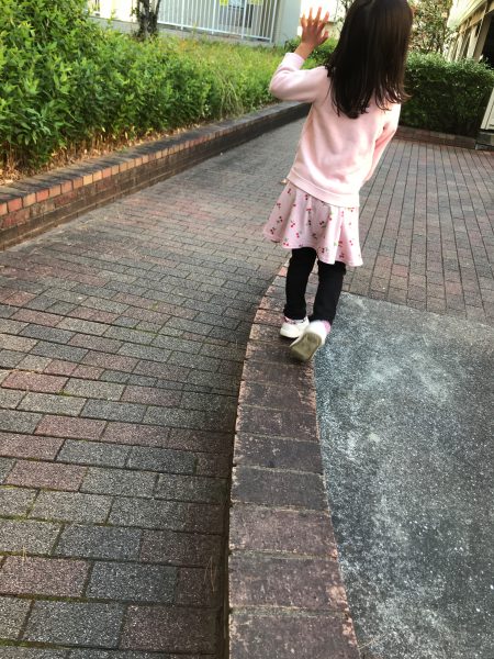 花壇のレンガブロックがありますよね。そこを大人が歩くと、子どもが真似をし始めます。