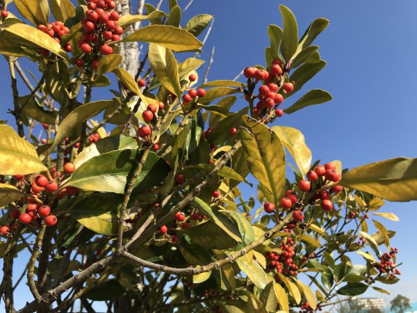 道には色々な木々に葉っぱや木の実が付いていたり、落ちています。