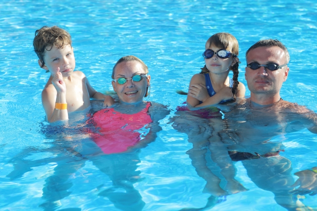夏の屋外プールに家族で行くと、