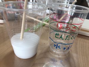 子ども一人ひとりが自分でスライムを作れるようにする方法を伝えます。