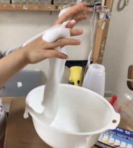 保育の現場でもスライムを作って楽しむ姿が見られます。